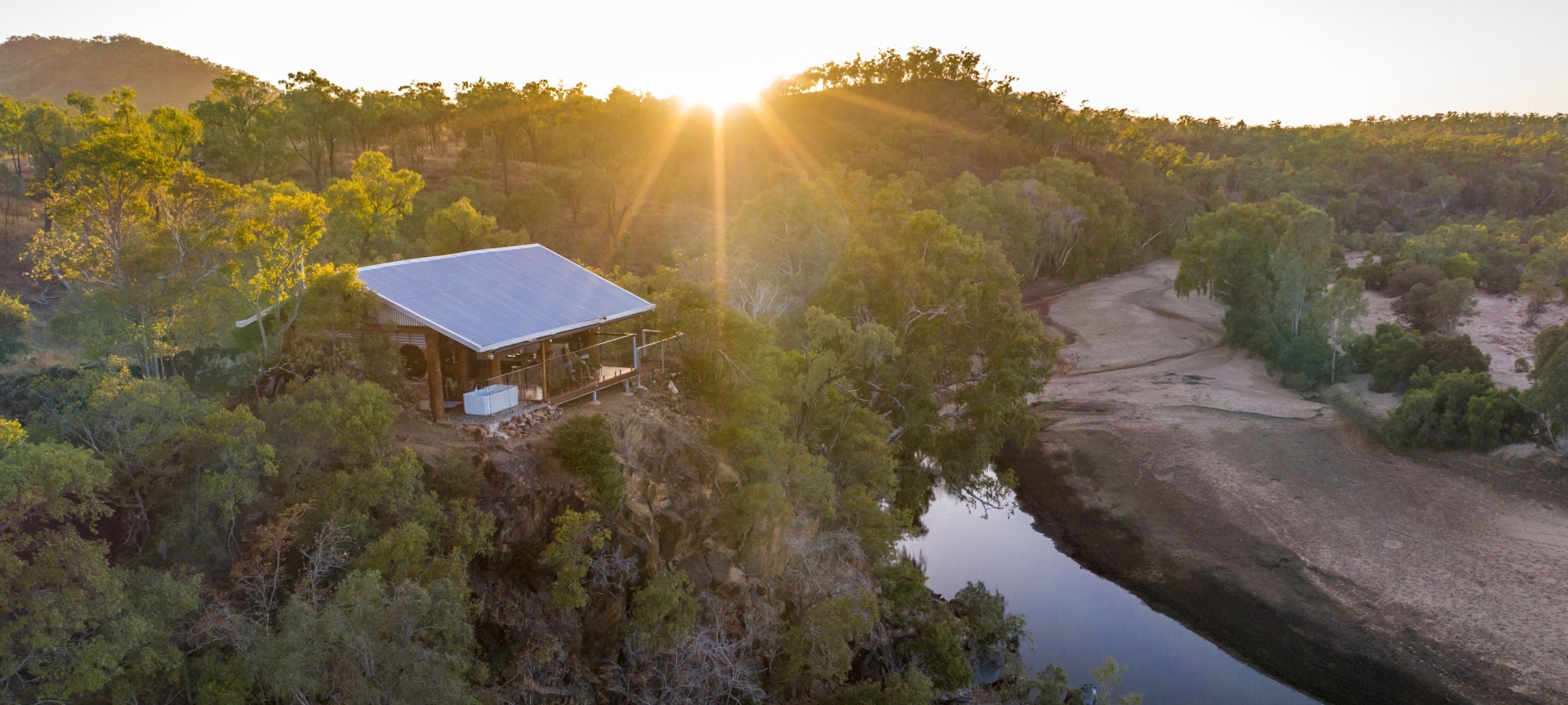 A six-hour drive from Townsville, Gilberton Outback Retreat is set in a truly unique location, boasting beautiful Aboriginal rock art, an historic gold mining town and a thriving nature reserve. Once you’ve explored the treasures at your doorstep, get hands on at the working cattle station, try your luck at fishing or unwind among the wildlife and scenery of the Gilberton Nature Reserve. In the comfort of your farm-chic retreat, enjoy hearty home cooked meals and panoramic views overlooking Gilbert River from your private deck.