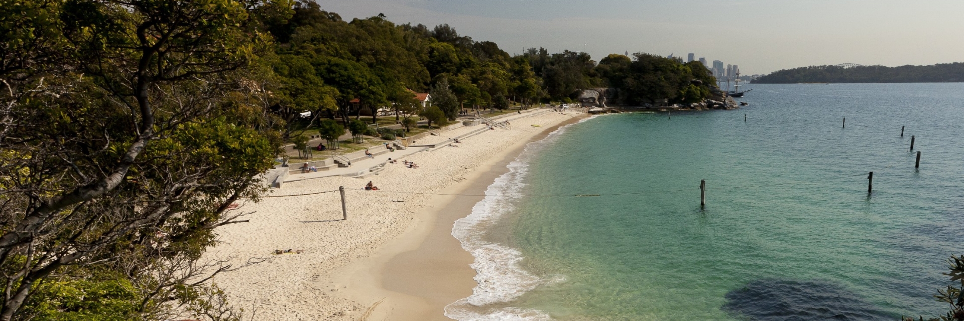 Công viên Nielsen rợp bóng cây sung trải dài phía trước bãi cát chính thức được gọi là Bãi biển Cá mập nhưng lưới biển đảm bảo địa điểm thân thiện với gia đình này là một trong những nơi bơi lội an toàn nhất của bến cảng. Bob dưới nước mà không quan tâm đến thế giới trong khi đắm mình trong tầm nhìn ra đường chân trời của thành phố và Cầu Cảng.