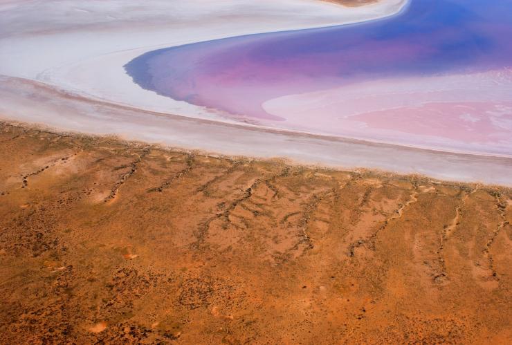 Wilpena Pound Resort坐落於南澳州(South Australia)古老的費蓮達山脈(Flinders Ranges)中,這片山脈對當地的阿得亞曼塔哈族(Adnyamathanha)原住民而言是神聖之地。這片地貌已有超過6億年歷史,而最理想的觀賞方式,莫過於從高空俯瞰整片山脈。登上觀光客機,飛越威爾潘納地質盆地(Wilpena Pound)長17公里(10英里)、闊8公里(5英里)的天然圓形凹地,飽覽目瞪口呆的迷人美景,然後前往艾爾湖(Kati Thanda-Lake Eyre)欣賞閃閃發光的粉紅鹽晶。